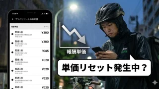 ウーバーイーツ配達員の間で噂される「単価リセット」とは何か。最低単価が続く理由や低単価爆鳴り、届かなイーツが発生する仕組みを配達員目線で詳しく解説します。