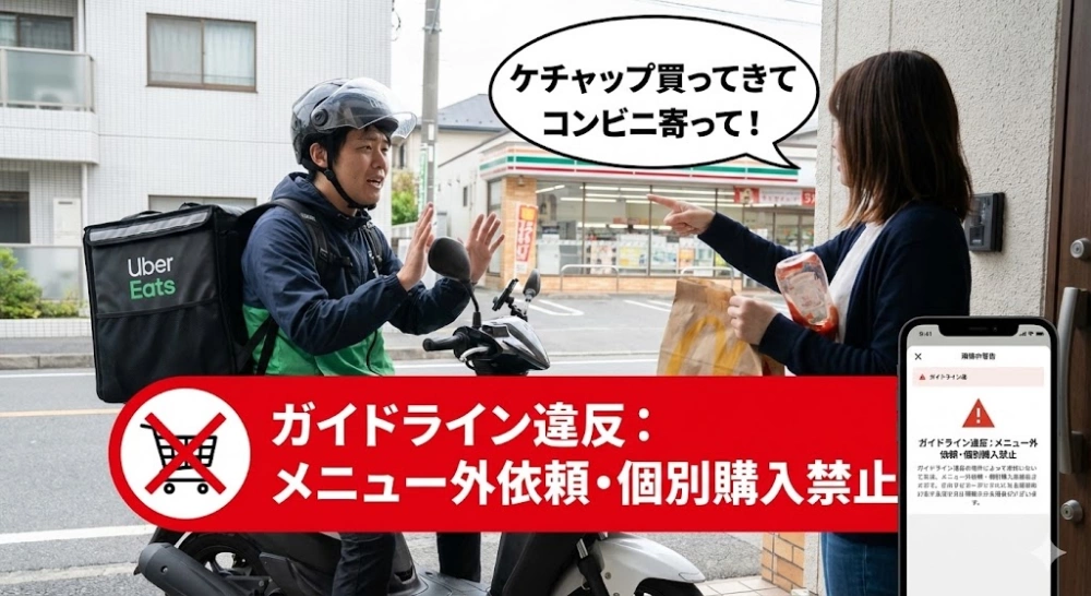 実はこれらの行為、多くがガイドライン違反にあたります。このページでは、なぜ禁止されているのか、配達員・注文者それぞれの立場から分かりやすく解説します。